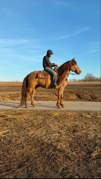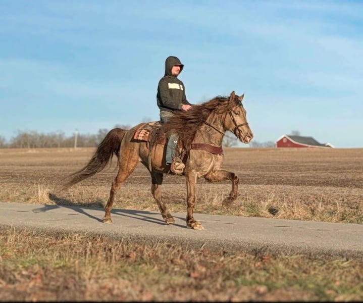 ONLINE AUCTION Place your bids at www.PlatinumEquineAuction.com Starting Bid $3500 Auction ends March 2nd, 2025 Need a new saddle? Check out White Rock Saddles on our website or Facebook! Dexter is a handsome champagne Kentucky mountain gouging that is 12 years old and stands exactly 15 hands tall. This is a been there done that horse that has been shown in trail ridden in several different states. This horse truly is a pleasure to work with and never causes any issues. He is always laid-back and peaceful, aiming to please. He is very clean and quiet in his stall and gets along well with other horses. On the trail, Dexter is confident and surefooted, and will ride at the speed you ask him to go slow or fast.. He has a nice relaxed walk, goes right into gait and can move on out when I asked without getting hot or pushy. He also has a very nice easy to sit lope. Dexter handles his self well in the rough terrain and is traffic safe as well. He has a beautiful long, flowing mane and tail to complement that beautiful champagne color. If you’re looking for something to catch every eye on the trail yet give you a safe ride. This is a horse you’ve been looking for. Located in Moscow, OH. Contact Brandenburg Stables Zach 513-508-3684 with any questions or to make a buy it now offer. Thanks! ONLINE AUCTION Place your bids at www.PlatinumEquineAuction.com Starting Bid $3500 Auction ends March 2nd, 2025 Need a new saddle? Check out White Rock Saddles on our website or Facebook!