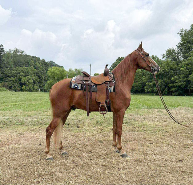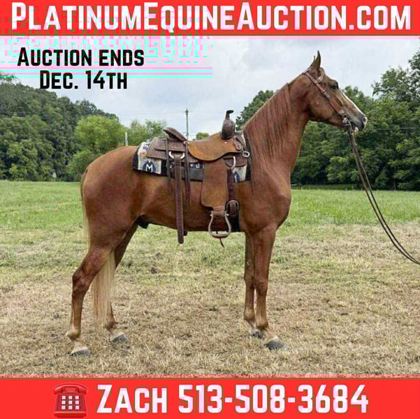 ONLINE AUCTION Place your bids at www.PlatinumEquineAuction.com Starting Bid $3500 Auction ends December 14th, 2025 Need a new saddle? Check out White Rock Saddles on our website or Facebook Charlie bit me is a handsome registered walking horse gelding that is 4 years old and stands a stout 15.2 hands tall. This is a well experienced young horse with a bright future and his whole life ahead of him. Charlie has plenty of experience on the trail and on the busy road around traffic. This is a well mannered civilized gelding that is ready to take home and enjoy. Charlie has a really smooth natural gait that that is comfortable to enjoy all day but he will also cantor and walk on a relaxed rein until asked to speed up. He is not a hot horse or complicated to ride in anyway. He is safe and confident on the trails and does not shy from traffic. Located in Grassy Creek, KY. For more info contact Zach with Brandenburg Stables 513-508-3684. ONLINE AUCTION Place your bids at www.PlatinumEquineAuction.com Starting Bid $3500 Auction ends December 14th, 2025 Need a new saddle? Check out White Rock Saddles on our website or Facebook