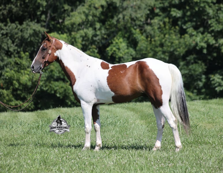Deacon is a 15.1h, 5 year old, Tennessee Walking Horse gelding that is a beautiful chestnut tobiano color! He is Mr. Personality, as friendly as they come, loves attention and is very calm natured! Deacon has been ridden by every member of our family all the way down to our 7 year old and he is sure to help build your confidence levels! He has been ridden down the highways and he is traffic safe. Deacon is great on trails and he will cross creeks, ditches, logs and navigate rough rocky areas. He has a natural gait that is super smooth, he will lope, has a good stop, he neckreins some and backs. He has been exposed to all kinds of wildlife such as deer or turkey or other animals like cows or dogs and will go anywhere that he is asked too. He has been ridden many miles in the mountains of Eastern Kentucky and encountered every obstacle possible on the trail. He has been on several week long camping trips. He hauls well and picketline ties also. He will go up or down even the steepest slopes, across deep creeks, over downed trees, and over all types of rough terrain while still being sure footed. Dan has no bad habits! He truly is the horse of lifetime and we want anyone that is interested in getting to know Dan to just give us a call and everyone is welcome to come see him in person as well! Feel free to call Eric 606-308-2461 with any questions.
