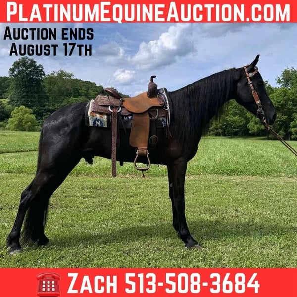 ONLINE AUCTION Place your bids at www.PlatinumEquineAuction.com Starting Bid $3500 Auction ends August 17th, 2025 Need a new saddle? Check out White Rock Saddles on our website or Facebook A bingo miracle is a handsome black registered TWH gelding That is 5 years old and stands 15.2 hands tall. This sharp gelding is super smooth gaited and has an excellent personality. He was trained correctly and already has plenty of trail experience. Bingo rides out alone or in crowds both big or small. He crosses down debris on the trail, goes through water and is traffic safe. He is safe enough for most any rider that knows the basics and will not take advantage of newbies. He walks when asked and goes right into gait when asked as well. Bingo has excellent ground manners and loves to be groomed. Bingo is located in Grassy Creek, KY. Call Zach with Brandenburg Stables 513-508-3684 for additional information or to set up a time to come see him. ONLINE AUCTION Place your bids at www.PlatinumEquineAuction.com Starting Bid $3500 Auction ends August 17th, 2025 Need a new saddle? Check out White Rock Saddles on our website or Facebook