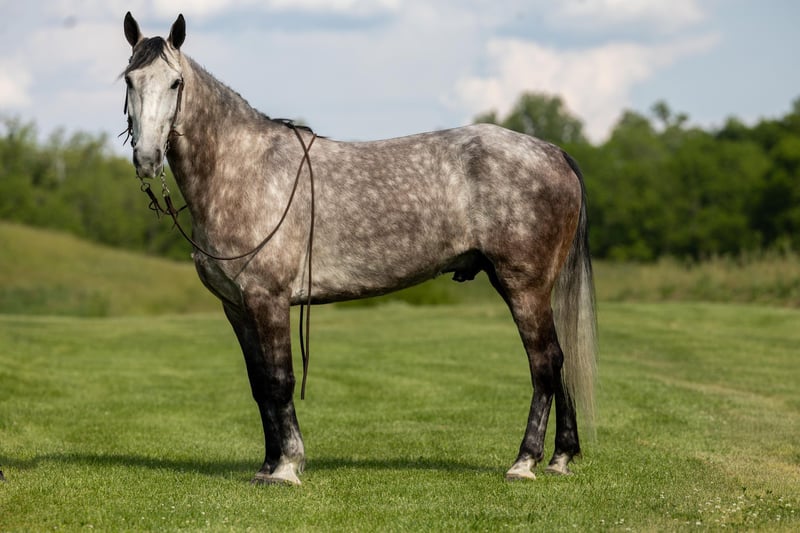 ONLINE AUCTION Place your bids at www.PlatinumEquineAuction.com Starting Bid $3500 Auction ends June 23rd, 2024 Need a new saddle? Check out White Rock Saddles on our website or Facebook! If you are looking for a trail horse on Saturday and then a horse to put on the rail Saturday night to win you some blue ribbons, look no further! Let me introduce you to Nelly. Nelly is a 6 year old DAPPLED GREY gelding. He stands 15.3 hands tall and will weigh 1100 lbs. Nelly has been used on the trails and in the show ring. He has a beautiful head set and will move out with a lot of action and style! Through the trails, Nelly will cross all obstacles with confidence rather that be trees, stumps, hills or water when asked. He is brave, sure footed and confident. He has been ridden in local fun shows and leaving with many blue ribbons! Nelly is a very personable horse! He will meet you at the gate every time! He is very gentle and doesn’t have a mean bone in his body! He stands to be saddled, bridled and groomed! He will park out on command with a tap on his shoulder! Stands for mounting and dismounting with or without a mounting block! If you’re wanting a lot of complements on the trail or a bunch of ribbons to hang on the wall, Nelly is your winner! For any other information please contact PR Quality Horses Colton 606-748-9009 or Haley 859-475-2621. ONLINE AUCTION Place your bids at www.PlatinumEquineAuction.com Starting Bid $3500 Auction ends June 23rd, 2024 Need a new saddle? Check out White Rock Saddles on our website or Facebook!
