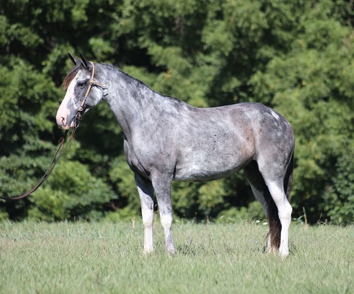 ONLINE AUCTION Place your bids at www.PlatinumEquineAuction.com Starting Bid $3500 Auction ends September 28th, 2025 Need a new saddle? Check out White Rock Saddles on our website or Facebook May Belle is a horse of a different color!! She is a beautiful 12-year-old Tennessee Walking Horse mare standing at 15 hands high. She has been on numerous camping trips, including to Big South Fork in Tennessee, where she has mastered rough, rocky trails and handles herself with ease. From steep slopes to deep creeks, downed trees, and rugged terrain, May remains sure-footed and reliable. She’s also been ridden in traffic and is entirely safe around cars, semis, logs, and dump trucks. If you’re looking for a smooth ride, May’s true 4-beat gait is a dream for anyone to enjoy without straining their back. Not only does she have the looks, but she’s also got the moves! May does well in a mixed herd and has a fantastic attitude, no matter what you ask of her. For any questions, feel free to call Trevor Patrick 606-516-8069. Located in Parker’s Lake, KY. ONLINE AUCTION Place your bids at www.PlatinumEquineAuction.com Starting Bid $3500 Auction ends September 28th, 2025 Need a new saddle? Check out White Rock Saddles on our website or Facebook