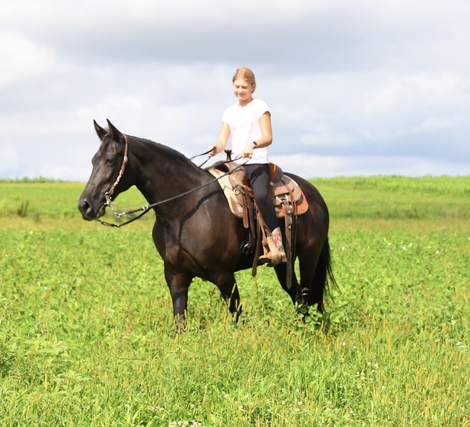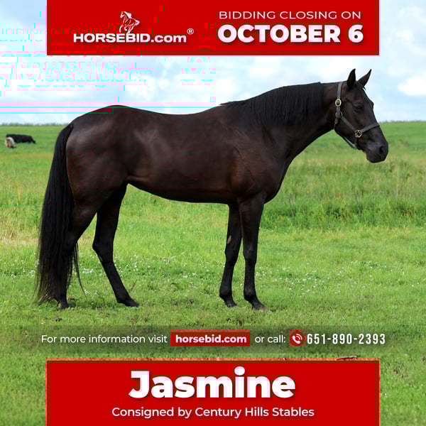 🍂 𝓐𝓾𝓽𝓾𝓶𝓷 𝑨𝑳𝑳 𝑺𝑻𝑨𝑹 𝑳𝑰𝑵𝑬𝑼𝑷 🍂 Happening now thru MONDAY | OCTOBER 6th - Available EXCLUSIVELY on HorseBid's website! For more details and to register visit: www.Horsebid.com CONSIGNOR CONTACT: Century Hills Stables 651-890-2393 LOCATION: Hastings, MN BREED: TWH REGISTERED: Yes REGISTERED NAME: Latino Jazz COLOR: Black HEIGHT: 15.3 AGE: 12 GENDER: Mare Let me introduce you to one of the nicest mares I’ve ever had the pleasure of consigning. If you were to type into an AI generator “tall, black, magical Tennessee Walking horse,” a perfect picture of Jasmine would be the result. Jasmine is a showstopper with a flowing tail that drags the ground and an unmistakably striking appearance. Conformationally correct and BIG in stature, she’d be an excellent foundation mare for producing beautiful gaited foals—whether for trail riding or show! This mare’s gait is truly special—smooth, consistent, and so comfortable that even a Cadillac would be envious. Unlike many gaited horses on the market, Jasmine stays in gait reliably, making every ride a pleasure. if that all sounds tempting, it gets better—Jasmine isn’t mare-ish or crabby! She loves attention and will stand for hours brushing, braiding, clipping, or bathing. She’s affectionate and easy to handle. Jasmine is sound, trailer-friendly, and suitable for all levels. She rides out alone or in a group, is gentle and willing, making her perfect for most riders. She can be stalled or pastured with just about anything and is easy to care for. She can sit for months and still ride off without a hump. Visits , PPEs welcome at buyers expense. Shipping can be arranged anywhere just ask!