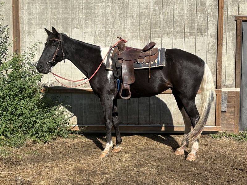 Lass dich vom Alter nicht täuschen – dieses Pferd liebt Bewegung! Sie wurde überwiegend im Gelände eingesetzt. Sie geht freiwillig mit, auch alleine. Sie überquert Bäche und folgt den Anweisungen ihres Reiters. Außerdem wurde sie im Reitplatz genutzt. Sie wurde in Unterrichtseinheiten geritten, allerdings mit einem selbstbewussteren Reiter. Sie wurde an das Barrel-Pattern herangeführt. Sie ist sehr willig, zeigt aber mehr Antrieb als Bremse. Sie liebt Aufmerksamkeit und begrüßt dich gerne auf der Weide. Sie steht problemlos beim Schmied. Transportiert sie gut. Ist aktuell geimpft und hat einen aktuellen Coggins-Test.