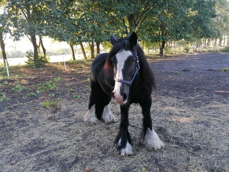 Heart horse seeks loving home – Irish Cob (Tinker), 12 years old, black This wonderful Irish Cob gelding was born directly in Ireland and not only has an impressive appearance but also a heart of gold. At 12 years old, he is in the prime of his life to share many beautiful years with his person. He stands at approximately 152 cm, is an expressive black with a striking white blaze and charming white socks – a real eye-catcher. He has only been kept in an open stable and does not know a box. Therefore, he will only be sold to an open stable environment with companions – preferably in the company of other horses, possibly even together with another horse. He is a balanced leisure partner, well-mannered, people-oriented, and reliable – ideal for anyone looking for a horse with an honest character and gentle soul. Viewings are possible immediately by phone appointment. If the chemistry is right, he will be placed in his new home with a protection contract. It is important to us: a good home over price! – this is of course negotiable. No sales to dealers!