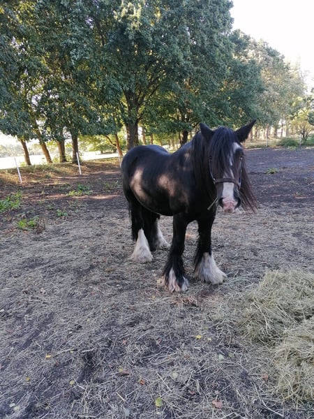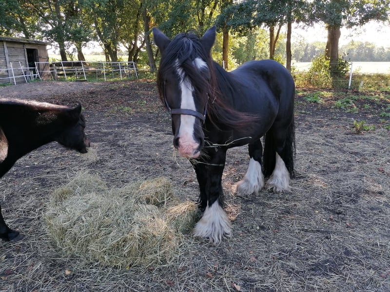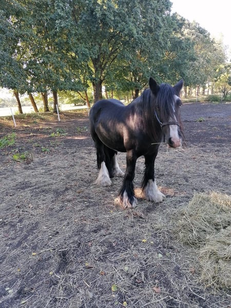 Hartstochtelijk paard zoekt liefdevol thuis – Irish Cob (Tinker), 12 jaar, zwart Deze prachtige Irish Cob ruin is rechtstreeks in Ierland geboren en heeft niet alleen een indrukwekkend uiterlijk, maar ook een hart van goud. Met zijn 12 jaar is hij op de beste leeftijd om zijn mens nog vele mooie jaren samen te schenken. Hij meet ongeveer 152 cm, is een expressieve zwarte met een opvallende witte aftekening en charmante witte benen – een echte blikvanger. Hij is uitsluitend in een open stal gehouden en kent geen box. Daarom wordt hij alleen in open stal met soortgenoten aangeboden – graag in gezelschap, eventueel zelfs samen met een ander paard. Hij is een evenwichtige recreatiepartner, braaf in de omgang, mensgericht en betrouwbaar – ideaal voor iedereen die een paard met een eerlijk karakter en een zachte ziel zoekt. Bezichtigingen zijn per direct mogelijk na telefonische afspraak. Als de klik goed is, wordt hij met een beschermcontract aan zijn nieuwe levensplek gegeven. Voor ons is belangrijk: plek boven prijs! – deze is uiteraard bespreekbaar. Geen verkoop aan handelaren!