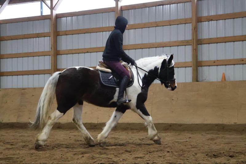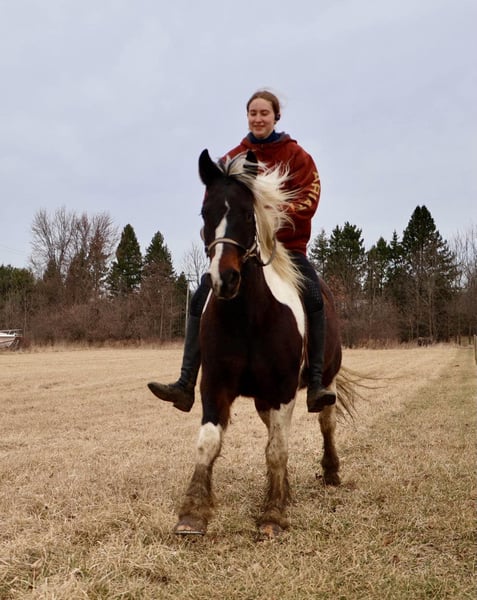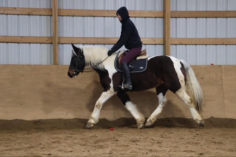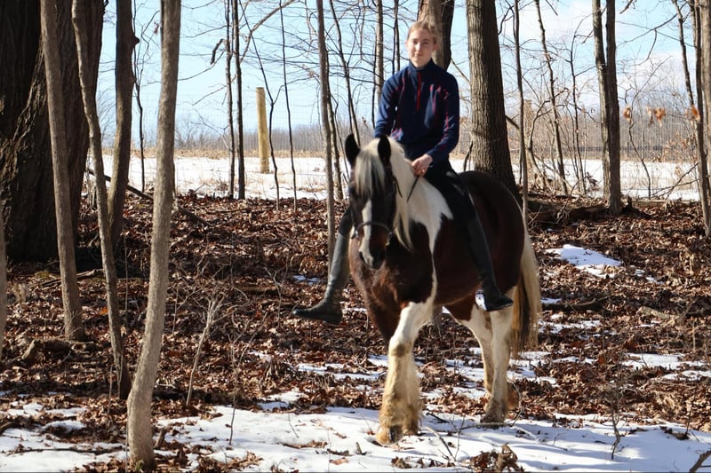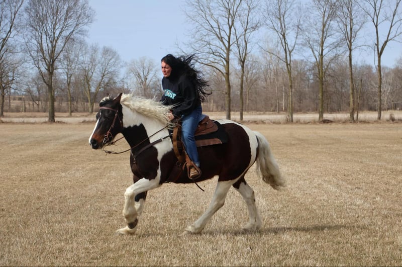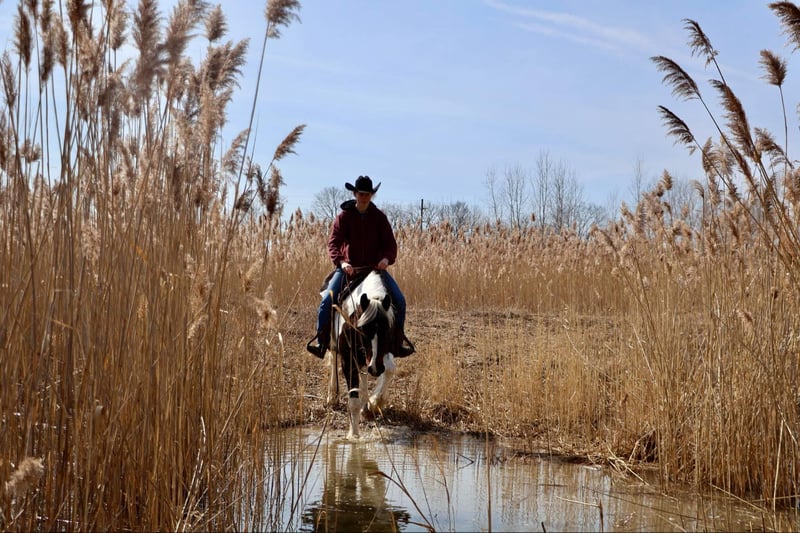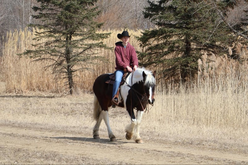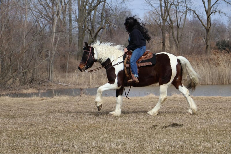ONLINE AUCTION Place your bids at www.PlatinumEquineAuction.com Starting Bid $3500 Auction ends April 6th, 2025 Need a new saddle? Check out White Rock Saddles on our website or Facebook! He is an all-around, user-friendly, happy-go-lucky kind of guy! This boy is nothing short of spectacular. Hes a beautiful tri colored paint gypsy vanner cross with a snow white mane and tail! He stands a solid 15.2 at 12 years old. He has great bone structure and solid hooves. This gelding is put together beautifully. Patch is one of the most docile guys you will meet. He will stand tied anywhere you want to tie him for grooming, pampering, and just to be loved on. He loves a good bath and will stand and let you blow dry and braid his beautiful white mane tail and feathers. Patch has been used for tons of trail rides as he loves adventures. Patch has been hauled all over the Midwest and is no stranger to woods, water, wildlife, traffic, cyclists and any other obstacle you may come across on a trail. He’s been ridden out in the field and down the road. He’s more of a slow and steady kind of guy who will take his time soaking in the scenery. He loves teaching kids and beginners as he’s just got a very calm and kind demeanor. He has been used in kids camp doing arena work. He will walk, trot, canter, and take both leads. He also has great flying changes. He comes equipped with stellar gaits, as he’s one of the most comfortable horses you will ever sit on. He will stop on a dime and stand patiently. He has been ridden by up to 3 kids at once and has no problem. He also jumps around and dose so in great form! He’s the ultimate family horse as he’s big enough to carry a full-size adult or several children all at once but yet he’s kind enough to take care of some of the tiniest riders. He’s a confidence building type of guy. Patch lives outside with other horses and he plays very well with them. When you walk outside he’s always one of the first to greet you at the pasture gate. He’s a very easy keeper. Patch has been in several parades, he has even carried a flag. Commotion and loud noises don’t phase him a bit. He has completed our desensitization training with flying colors! He is also broke to drive and will do so single or double. He’s been down the road, and in the field! Patch has endless possibilities. He could be a best friend for any family. He could fox hunt, play in pony club, cart classes, show in any laid back discipline such as equitation, showmanship, trail, obstacle, or even a hunter under-saddle. He is correct in every way and has a demeanor to match. Patch lives in Howell, Michigan 48855 please give Ellesse Schwartz a call or text 248-390-6831 ONLINE AUCTION Place your bids at www.PlatinumEquineAuction.com Starting Bid $3500 Auction ends April 6th, 2025 Need a new saddle? Check out White Rock Saddles on our website or Facebook!