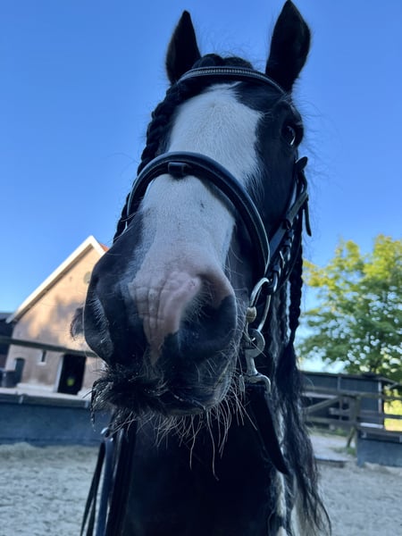 Te koop: - Eerlijk paardenhart in een krachtig Tinker‑lijf Met pijn in mijn hart verkoop ik mijn maatje om medische redenen. Storm is een indrukwekkende 15‑jarige Irish Cob (Tinker) met een bijzonder karakter. Geen paard dat je “even koopt”, maar een maatje waar je echt een band mee opbouwt. Hij is allround inzetbaar en houdt van afwisseling. Lange buitenritten zijn favoriet en hij is daarbij bomproof in verkeer en onbekende situaties. Bakwerk vindt hij minder leuk, maar een keer gas geven of een sprongetje maken doet hij met enthousiasme. Storm heeft ruime ervaring met mennen, clickertraining en targettraining en is daardoor slim, leergierig en mentaal sterk. ❗ Belangrijk Storm is een paard met gevoel en heeft een ervaren, evenwichtige ruiter nodig. Hij is een echte spiegel. Ben je duidelijk en in balans, dan krijg je alles van hem terug. Heeft hij vertrouwen in je, dan gaat hij voor je door het vuur. In de omgang is Storm een fijne, betrouwbare ruin met typisch Tinker‑karakter: rustig, nuchter en prettig in de dagelijkse handling. Geen stalgebreken. Gegevens Naam: Storm Ras: Irish Cob (Tinker) Geslacht: Ruin Leeftijd: 15 jaar Stokmaat: ± 1.48 m (breed gebouwd, oogt groter) Gezondheid & verzorging Gekeurd bij aankoop (september 2021) Opnieuw keuren toegestaan, kosten koper PSSM1 en lichte CPL, beide volledig onder controle met suikerarm dieet Verder klinisch in orde Geen stalgebreken Elke 7 weken bekapt, sterke hoeven Jaarlijks tandarts en kokerreiniging Entingen up‑to‑date Geschikt voor Volwassen, ervaren ruiter Recreatief rijden met veelzijdigheid Buitenritten, voor de kar en grondwerk Een fijn maatje voor de lange termijn Handelaren en maneges hoeven niet te reageren. 💶 Vraagprijs: €5.000,- Prijs bespreekbaar bij een goede klik en passend thuis. Alle spullen mogen mee (zadel, hoofdstel, dekens e.d.). Mentuig tegen meerprijs. hij gaat niet zomaar weg; een goed en blijvend thuis is het allerbelangrijkst