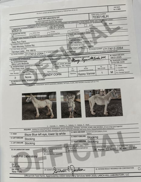 Up to date on Coggins, rabies, and vaccines.