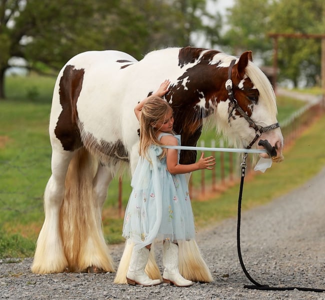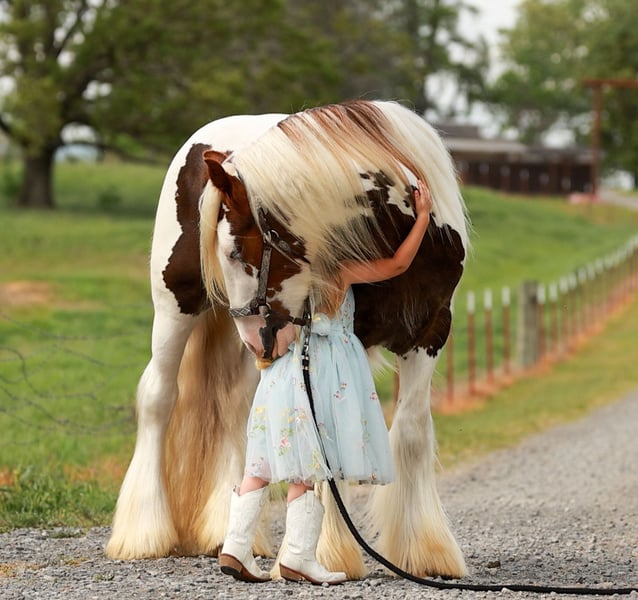 ▪️▫️◾️𝐭𝐡𝐞 𝑴𝒂𝒚 𝐒𝐞𝐥𝐞𝐜𝐭◾️▫️▪️ Happening now thru MONDAY | MAY 4th - Available EXCLUSIVELY on HorseBid's website! For more details and to register visit: www.Horsebid.com CONSIGNOR CONTACT: Lacey Wilf Equine 501-940-8704 LOCATION: Quitman, AR BREED: Gypsy Vanner REGISTERED: Yes REGISTERED NAME: TMR AVENTUS COLOR: Chestnut Tobiano HEIGHT: 14 AGE: 3 GENDER: Gelding Let me introduce you to my best friend, TMR Aventus, better known as Vinny. This handsome, majestic, and endlessly personable 3-year-old gelding stands 14 hands and has the kind of presence you notice immediately, but it is his heart that makes him unforgettable. Vinny absolutely loves everyone. He is the horse that wants to be part of whatever you are doing, whether that means meeting you at the gate, resting his head near you, or spending the afternoon napping and cuddling with his human friends. He has a way of making every ordinary barn day feel a little more special. Under saddle, Vinny is every bit as enjoyable as he is on the ground. He is a beautiful mover with natural balance, catches both leads, has a big stop, and carries himself with a willing, trainable attitude. He is athletic, versatile, and kind-minded, with the ability to go in so many different directions. Down the trail, Vinny is steady, pleasant, and happy to go where he is pointed. He has also spent days working at the stockyards around cattle and does not mind a day’s work, giving him the kind of real-world experience that only adds to his confidence. On the ground, Vinny sets a standard for manners, quiet, respectful, and consistent in everything from catching to the farrier. Horses like him are hard to find, the kind that feel like more than just a horse. With Vinny, you are not just gaining a talented young gelding, you are gaining a genuine partner, the kind that becomes part of your family the second he steps off the trailer.