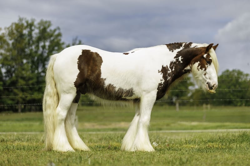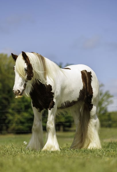 VINNY, potro de 3 años, 1,45 m, castaño tobiano, Gelding de la raza Gypsy Vanner.