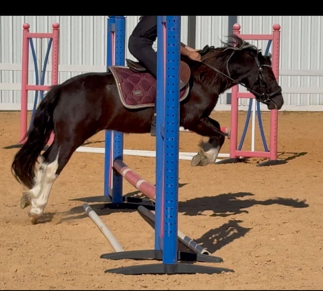 🎁 𝐈𝐍 𝐓𝐈𝐌𝐄 𝐅𝐎𝐑 𝑪𝒉𝒓𝒊𝒔𝒕𝒎𝒂𝒔 🎁 Happening now thru TUESDAY | DECEMBER 9th - Available EXCLUSIVELY on Ponybid's website! For more details and to register visit: www.Ponybid.com CONSIGNOR CONTACT: JP Performance Horses 817-901-6596 817-901-6596 LOCATION: Weatherford, Texas BREED: Mini Gypsy Cross REGISTERED: No REGISTERED NAME: Hank COLOR: Black and White Overo HEIGHT: 12 AGE: 4 GENDER: Gelding Meet Hank – The Pony Every Kid Dreams Of Hank is the kind of pony every child hopes for—a true best friend wrapped up in a stout, adorable Gypsy-cross package. He’s built to last, the perfect size standing 12 hands tall, for kids to enjoy for years, and he has the sweetest personality you could ask for. From the moment you walk into the pasture, Hank is there to greet you at the gate, eager for attention and always ready to be loved on. Though he’s only 4 years old, he rides with the mind and manners of a seasoned veteran. He has been down countless trails, started over jumps, and even drives. Raised in Amish country, he’s been exposed to all sorts of sights and sounds, and nothing seems to faze him—he takes everything in stride with a calm, steady confidence. We’ve taken Hank everywhere: through town, in parades, on long trail rides, into the water, bareback—you name it, he’s done it. He’s gentle, dependable, and absolutely packed with personality. Whether your kids want a trail buddy, a fun little all-arounder, or a forever friend, Hank is the pony that checks every box. Hank is up to date on coggins, recent teeth floating and worming. Has great feet, stands for the farrier and loads and unloads in the trailer like a champ. We love this pony and excited to see hij under some lucky kids Christmas Tree! He will gladly come in the house to stand under the tree! For more information or to schedule a time to try Hank or have a FaceTime call for those far away, please call Jackie with JP Performance Horses at 817-901-6596. Shipping can be arranged and we are happy to make arrangements to hold him at our ranch until Christmas!