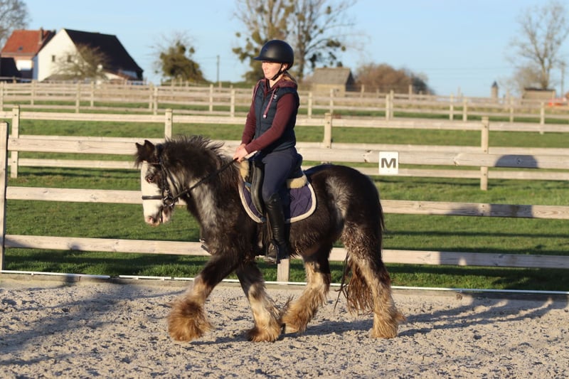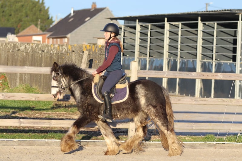 Poney Tinker – couleur spéciale – 4 ans – hongre – 1,28 m Superbe poney Tinker avec une couleur unique et spéciale, âgé de 4 ans, hongre et mesurant 1,28 m au garrot. En manège, il peut être un peu réservé, mais il est très doux et honnête en main. Il maîtrise bien les trois allures et possède un magnifique œil bleu moon, ce qui le rend encore plus exceptionnel. De plus, il s’entend bien avec d’autres poneys et se tient proprement parmi ses congénères. 📞 Plus d’informations ? 0032 475 682 243 🎥 Pour des vidéos : demandez notre site internet.