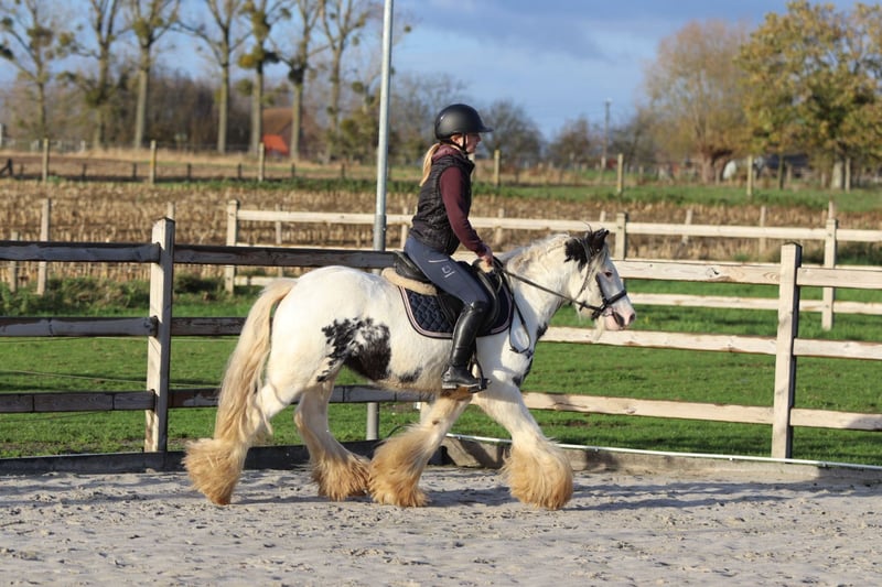 Marcus – Top Brave Tinker Pony Marcus is een prachtige 4-jarige Tinker ruin (1m32) met leuke aftekeningen, volle sokken en een superlief snoetje. Hij komt mooi overeen met andere pony’s en heeft een heel braaf karakter. Tijdens het verzorgen blijft Marcus keurig stilstaan: borstelen, vlechtjes maken, wassen… hij vindt het allemaal prima. In de piste is hij eenvoudig en fijn te rijden. Hij houdt een rustig, stabiel tempo in draf en gaat netjes over naar galop zonder gehaast te worden. Een sprongetje neemt hij ook zonder problemen. Daarnaast geniet hij evenveel van een ontspannen buitenrit. Marcus is bovendien bomproof (zie foto’s en video’s met de bal) en braaf op transport. Een ideale pony voor een recreatieve ruiter. 📞 Meer info: 0032 475 68 22 43 🎥 Video’s verkrijgbaar via onze website (stuur gerust een berichtje)