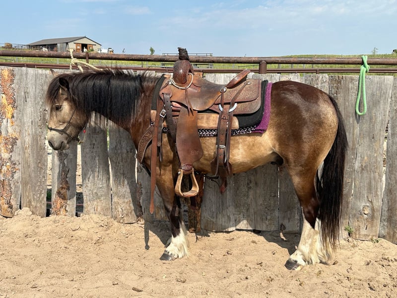 Wheezy, potro de 4 años, de 13.2 hh, caballo de cruce Gypsy Buckskin
