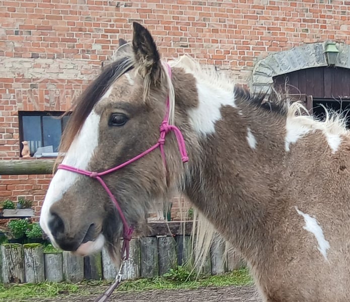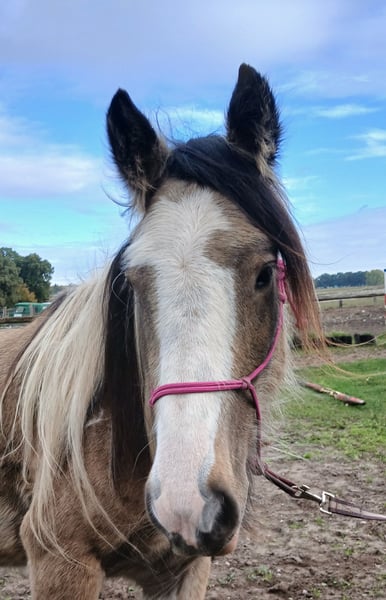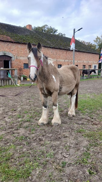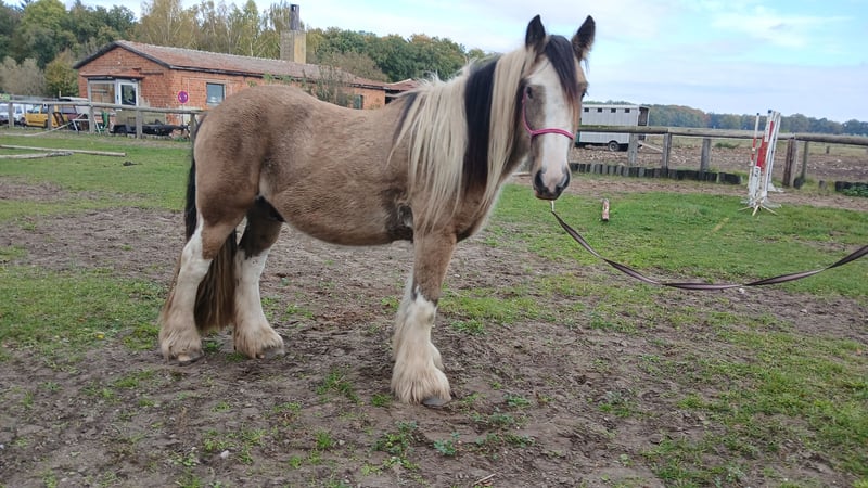 Hier kommt dein Traumpferd! Ein Irish Cob Wallach in einer absolut tollen Farbe - Buckskin Tobiano- mit einer langen wallenden Mähne! Pepe ist ein Chameur durch und durch. Er liebt es bekuschelt und betüddelt zu werden. Er lässt sich geduldig stundenlang seine Mähne und Fell bürsten. Gibt brav die Hufe und lässt sich super vom Boden arbeiten. Pepe wurde bereits longiert mit Sattel und kennt das Reitergewicht. Hierbei ist er sehr brav. Er steht in Robusthaltung in einer gemischten Herde und läuft Barhuf. Geb 5/22 EM ca 145Cm Papier vom ICS nl