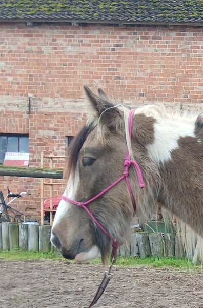Voici votre cheval de rêve ! Un hongre Irish Cob d'une couleur absolument magnifique – Buckskin Tobiano – avec une longue crinière abondante ! Pepe est un véritable charmeur. Il adore être câliné et choyé. Il se laisse patiemment brosser sa crinière et son pelage pendant des heures. Il donne volontiers ses sabots et accepte volontiers le travail au sol. Déjà longé avec selle et connaît le poids du cavalier. Il se montre très sage dans ce contexte. Il est en pension robuste, dans un groupe mixte, et marche pieds nus. Né en mai 2022 Hauteur approximative : 145 cm Certificat de l’ICS NL