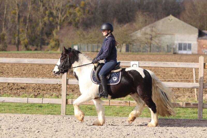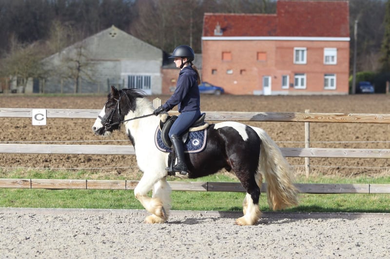 Minna est un magnifique poney de 5 ans, hongre, mesurant 1,35 m, avec une très belle conformation et de superbes markings. Il a une apparence robuste, mais est en même temps un poney très doux et patient en main. En soins, Minna est extrêmement sage : il se laisse laver, têter et soigner sans problème. Il s’entend aussi très bien avec d’autres poneys et est connu comme un compagnon agréable dans le groupe. Sous la selle, Minna est un cheval fiable et non peureux, aussi bien en manège qu’en sortie en extérieur. Il se monte calmement, connaît bien les trois allures et n’est certainement pas un poney paresseux. De plus, il saute aussi un peu. 📞 Plus d’informations ? 0032475682243 🎥 Pour voir des vidéos : demandez notre site internet