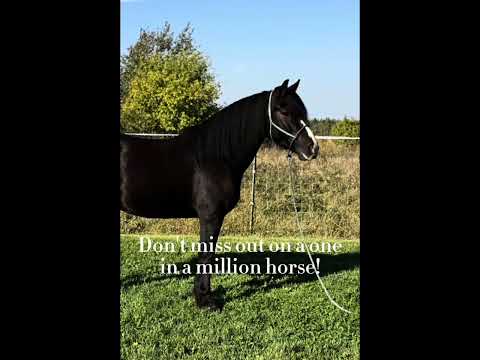 ⚜️ 𝓽𝓱𝓮 𝐇𝐨𝐫𝐬𝐞𝐦𝐚𝐧'𝐬 𝓢𝓱𝓸𝔀𝓬𝓪𝓼𝓮⚜️ Happening now thru MONDAY | DECEMBER 1st - Available EXCLUSIVELY on HorseBid's website! For more details and to register visit: www.Horsebid.com CONSIGNOR CONTACT: AJ Acres 920-251-5127 LOCATION: Pickett, WI BREED: Gypsy Cross REGISTERED: No REGISTERED NAME: AJA Black Shadowy Knight COLOR: Bay HEIGHT: 14.1 AGE: 5 GENDER: Gelding Shadow rides and drives; he is a horse that excels at whichever task you give him and aims to please. He is lovingly adored by his youth and adult riders, and enjoys attention from all humans. Shadow dominates in the show ring with his eye-catching movement. He has been successfully shown by youth and adults in hand, western, English, saddleseat, over cross rails, and speed events - placing competitively in each discipline! Not only does he prove himself with his show performance, Shadow has the sound and sane mind to take you safely down the trails. He has been hauled all over to multiple state parks, racked on tons of trail miles, crosses water and bridges, follows or leads. He’s used to dogs running around him during schooling and is not bothered by traffic. He has been stalled for weekend shows and stands well for bathing/banding/grooming. He has been ridden in our local 4th of July parade and loved all the attention! He’ll pick you up at the mounting block, greet you at the gate, and be happy to clock in to work for the day. Shadow knows voice commands (driving) and is attentive to leg, hand, and seat commands under saddle. He has beautiful gaits, knows his leads, pivots nicely, and has a great stop. He would excel in dressage, but could go any direction his next partner wants to go and will put forth the effort to do it successfully. Shadow truly is a special horse who will make someone a fantastic partner. We’re going to be sad to see this one go! Ties, loads, hauls, bathes, clips, etc. UTD all cares (chiro, worm, teeth, feet, vacc). Front shoes for show season. Will have current health certificate/PPE. Located Pickett, Wi. Hauling available.
