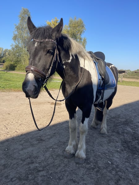For sale is this beautiful 4-year-old Irish Cob gelding with a height of approximately 145 cm. Tucker is an incredibly friendly and loyal companion! He is easy to ride and always fully engaged at 101%! He is accustomed to overcoming obstacles and loves trail rides—he is very composed and fearless! He has a pleasant and calm GO! Perfect for relaxing and unwinding. Super cuddly and people-oriented. The absolute dream pony for re-riders, leisure riders, and children. He is familiar with riding in groups and has no problem with it—he can go at the front, in the middle, or at the back. He loves the outdoors and is absolutely reliable both alone and in a group! He comes directly from Ireland and is now waiting for his dream home! Also suitable for riding schools!