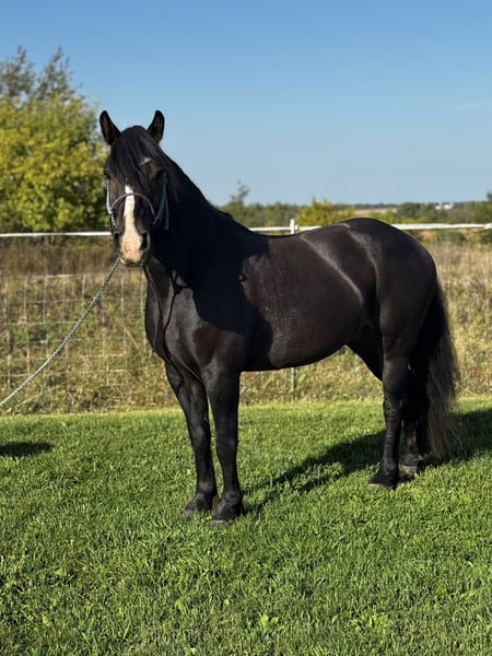 ⚜️ 𝓽𝓱𝓮 𝐇𝐨𝐫𝐬𝐞𝐦𝐚𝐧'𝐬 𝓢𝓱𝓸𝔀𝓬𝓪𝓼𝓮⚜️ Happening now thru MONDAY | DECEMBER 1st - Available EXCLUSIVELY on HorseBid's website! For more details and to register visit: www.Horsebid.com CONSIGNOR CONTACT: AJ Acres 920-251-5127 LOCATION: Pickett, WI BREED: Gypsy Cross REGISTERED: No REGISTERED NAME: AJA Black Shadowy Knight COLOR: Bay HEIGHT: 14.1 AGE: 5 GENDER: Gelding Shadow rides and drives; he is a horse that excels at whichever task you give him and aims to please. He is lovingly adored by his youth and adult riders, and enjoys attention from all humans. Shadow dominates in the show ring with his eye-catching movement. He has been successfully shown by youth and adults in hand, western, English, saddleseat, over cross rails, and speed events - placing competitively in each discipline! Not only does he prove himself with his show performance, Shadow has the sound and sane mind to take you safely down the trails. He has been hauled all over to multiple state parks, racked on tons of trail miles, crosses water and bridges, follows or leads. He’s used to dogs running around him during schooling and is not bothered by traffic. He has been stalled for weekend shows and stands well for bathing/banding/grooming. He has been ridden in our local 4th of July parade and loved all the attention! He’ll pick you up at the mounting block, greet you at the gate, and be happy to clock in to work for the day. Shadow knows voice commands (driving) and is attentive to leg, hand, and seat commands under saddle. He has beautiful gaits, knows his leads, pivots nicely, and has a great stop. He would excel in dressage, but could go any direction his next partner wants to go and will put forth the effort to do it successfully. Shadow truly is a special horse who will make someone a fantastic partner. We’re going to be sad to see this one go! Ties, loads, hauls, bathes, clips, etc. UTD all cares (chiro, worm, teeth, feet, vacc). Front shoes for show season. Will have current health certificate/PPE. Located Pickett, Wi. Hauling available.