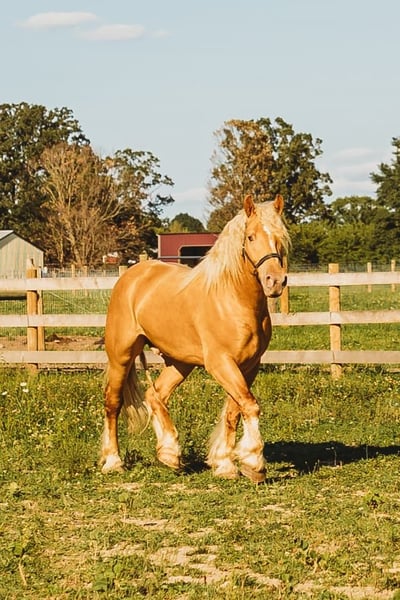 ONLINE AUCTION Place your bids at www.PlatinumEquineAuction.com Starting Bid $3500 Auction ends September 29th, 2024 Need a new saddle? Check out White Rock Saddles on our website or Facebook! Blackstones Golden Boy, or Sargent as we call him around the farm is the kind of horse that turns heads wherever he goes. This stunning 4-year-old, 16.2hh champagne colored American Cream Gypsy Vanner cross gelding is not just a remarkable sight. He shines like pure gold in the sun and has a gorgeous blonde mane and tail. he is a powerhouse of strength, versatility, and athleticism. For a horse of his size, Sargent moves with incredible grace and fluidity, making him not only a reliable mount but also an athlete in his own right. Whether you are riding Western, English, or bareback, Sargent delivers an exceptional experience, seamlessly transitioning between disciplines with ease. What truly makes Sargent stand out is his “been there, done that” attitude. He is the definition of a bombproof horse—absolutely safe in any environment. Sargent has been ridden on state roads, in the woods, open fields, and has even gone on a shopping trip to our local farm store! His beautiful golden color blonde mane and tail and flowing feathers capture everyone’s attention! One glance into his big hazel eyes will steal your heart. Out on the trails, Sargents calm, and steady nature shines. Water crossings, tarps, bridges and other common obstacles do not phase him in the slightest. His even temperament makes him an ideal horse for beginners who need a forgiving partner, while his experience and smooth gaits make him just as enjoyable for advanced riders. Sargent is the rare horse that adapts to his rider’s needs, making him a perfect fit for anyone from novice to seasoned equestrians. And speaking of smoothness, Sargents three gaits are simply unbeatable. His walk, trot, and canter are incredibly fluid and comfortable, making him perfect for all-day rides without leaving you sore. Whether you are working in the arena or exploring the trails, Sargents athleticism and stamina ensure he will keep going strong, mile after mile. In short, Sargent is the full package: strikingly beautiful, strong, athletic, and most importantly, safe. If you are looking for a versatile horse that excels in both riding and driving, Sargent is the perfect partner. He is ready to take on anything, whether you are a beginner looking for safety or an experienced rider seeking a smooth, dependable horse for long adventures. Sargent lives in Howell, MI 48855. Please call or text Ellesse Schwartz at 248-390-6831 for more information. ONLINE AUCTION Place your bids at www.PlatinumEquineAuction.com Starting Bid $3500 Auction ends September 29th, 2024 Need a new saddle? Check out White Rock Saddles on our website or Facebook!