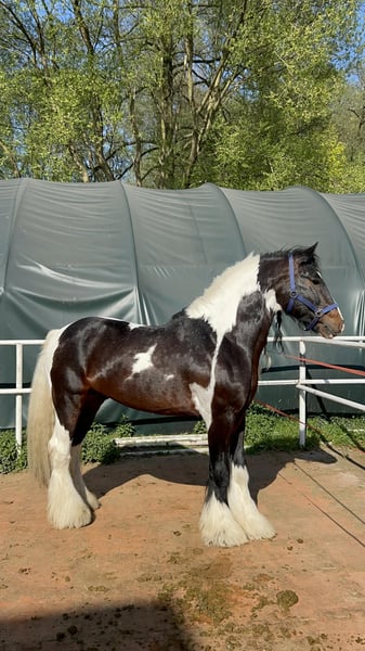 Przed Państwem Mister Darwin – 11-letni ogier o wyjątkowej prezencji i charyzmie! Licencjonowany przez ISC Nederland oraz wyróżniony prestiżową 1 premią STAR w PSHT, Mister Darwin to koń, który łączy w sobie znakomite pochodzenie z doskonałym charakterem. Na co dzień użytkowany zarówno ujeżdżeniowo, jak i w zaprzęgu, z łatwością odnajduje się w pracy i pokazach. To koń niezwykle kontaktowy, który z radością prezentuje swoje umiejętności – w tym także efektowne sztuczki, którymi potrafi oczarować publiczność! Mister Darwin to również sprawdzony i skuteczny ogier kryjący. Wyróżnia się stateczną naturą, zrównoważoną głową oraz imponującym, bujnym owłosieniem, co czyni go atrakcyjnym wyborem dla hodowców. Ogier jest całkowicie przebadany, wolny od PSSM, a także posiada gen homozygotyczny tobianum, dzięki czemu przekazuje efektowne, kontrastowe malowanie swojemu potomstwu. Co warte podkreślenia – wśród jego źrebiąt dominują klacze. To nie tylko koń pokazowy, ale również cenny reproduktor, który wnosi wartość genetyczną, urodę oraz wyjątkowy temperament do każdej hodowli.