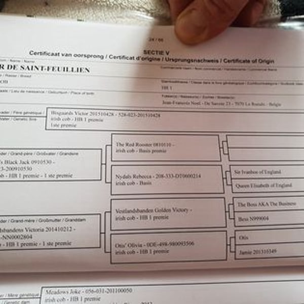 Ramazotti Potentiële hengst kandidaat met het predicaat Type Traditioneel. Zijn kleur is als glanzend donkere chocolade (ws Smoky Black), Tricolor hengstveulen krijgt Achatscheckung (brede donkere rand om de aftekening) evenals Ink-Spots op het lichaam, nu als veulen al zeer, zeer harig, zijn pluimen liggen ver op de grond !! en zeer sterke botstructuur, top bouw, schofthoogte om 1,48-1,50m beide ouders PSSM vrij. M: Rowie Bay Tricolor met Ink-Spots (Tom Price Bloed en kleindochter van Loyds Elite hengst ICS) V: Igor De Saint Feuillien Silverdapple zoon van Bisgaards Victor en o.a. Seafield Stan, Nydalls Black Jack, bloedlijn via Otis naar de legendarische The Midget) !! Kan op verzoek ook nog geschoren worden. Tel. 0152/ 55341095