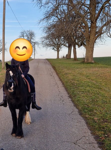 7 Jahre, Bilderbuchpony, ca. 1,28 Stm, Zähne regelmäßig gemacht, entwurmt, geimpft. Bella ist angeritten, geht als Handpferd zuverlässig ins Gelände, sehr sportlich, arbeitswillig, intelligent muss aber natürlich weiter ausgebildet werden, da erst am Anfang ihrer Ausbildung. Schmiede- und verladefromm, kennt Trakoren, andere Tiere. Super sozial in der Herde. Wir können sie uns auch gut vor der Kutsche vorstellen, da im Straßenverkehr sehr unerschrocken. Sie braucht jedoch eine klare, konsequente und fördernde Führung und ist deswegen nicht für Reitanfänger oder reines Kinderpony abzugeben. Sie ist kein Pony zum rumstehen, sondern muss regelmäßig gearbeitet werden. Bella wird nur an Bestplatz abgegeben, Das Zubehör kann mit erworben werden. Wer noch etwas Arbeit in sie steckt, wird mit einem super Pony belohnt werden.