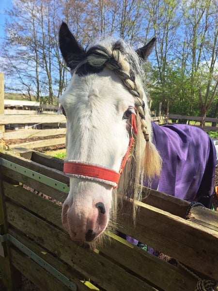 Boef es nuestro semental aprobado de por vida. Está montado y tiene un carácter dulce. Buscamos un buen hogar para él.