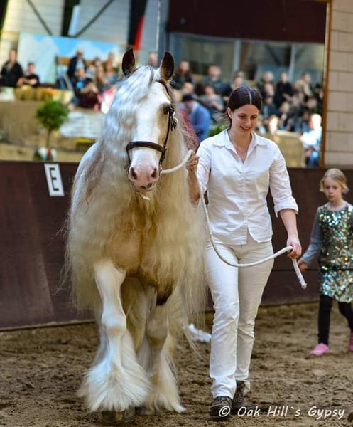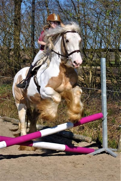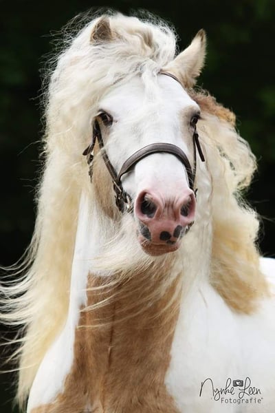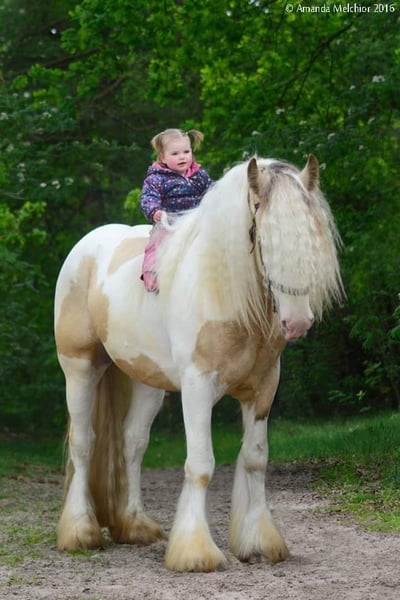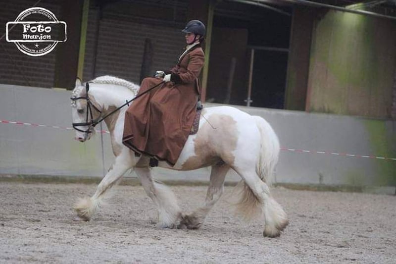 Legend from the Heavenlysmile Legend is inmiddels in Mexico! Gelukkig is Legend nog wel beschikbaar voor dekkingen middels diepvries sperma. Voor wie van een midden zwaar type tinker/ irish cob houdt! Legend staat bekend om zijn uiterst fijne karakter. Zeer rustig in handen, zie onze kinderen 😉 Het is een groot genot om met hem te mogen werken. Voor de koets een grote werklust en onvermoeibaar. Onder het zadel is hij M2+6 Legend is het "ouderwetse" midden zware type cob hij meet 1.58 Legend is ook röntgenologisch ggk, zijn sperma is van goede kwaliteit en hij is PSSM1 vrij. geheel VRIJ van mok rasp of zomerjeuk. Hij is voor meerdere stamboeken goedgekeurd voor de dekdienst. Eerste premie MODEL SPORT hengst. * ICS-NL * ZSSE-DE * NSvT * (het voormalige) TGCDHA * Hij laat ruime sterke beweging zien en behaalde bij het ZSSE een 9 voor zijn galop in de werkproef voor de koets. een zwaar type cob met zeer soepele gangen. Legend is op zijn kleur getest EeAaCrZTOTO Dit wil zeggen Silver Valk/Buckskin en Homozygoot voor bont. Hij zal dus ALTIJD een bont veulen geven. EN 50% kans om het Creme gen door te geven: valk palomino smokeyblack Op een merrie met creme: perlino cremello smokeycream EN 50% kans dat het veulen ook het silvergen zal dragen! Hij heeft dus echte toverballen 😛 Zijn veulens zijn sterke grote dieren met zeer soepele beweging en een gouden karakter. In vergelijking tot de "luxere" merries verzwaard hij de veulens mooi en bevallen de merries altijd vlot. Hij heeft veulens met merries van 1.20 (juiste type) en allen vlot bevallen, Legend geeft dus een hoog geboortegemak!! Hij geeft zijn stempel mooi mee, type beweging werklust karakter en een berg haar. Legend is via diepvriessperma beschikbaar Voor verdere informatie over de KI graag even bellen of pb. Het dekgeld bedraagt 675 Euro (excl btw en overige kosten)