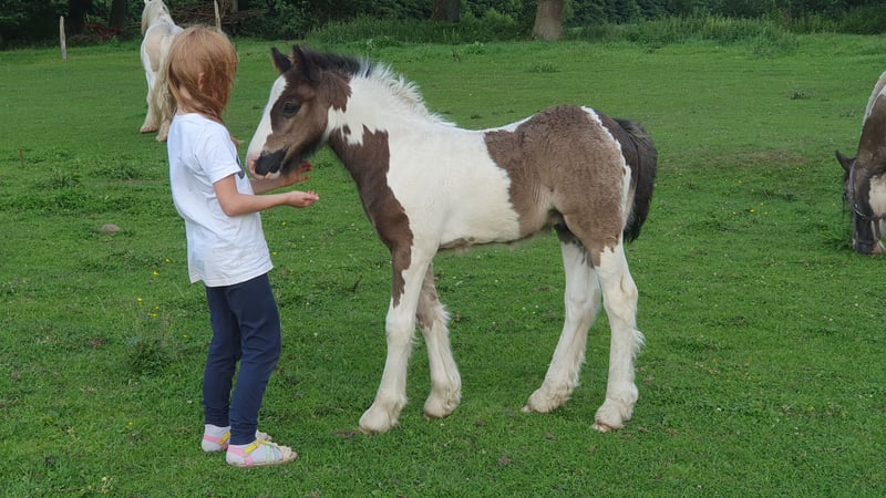 Leider müssen wir uns nun doch von unserem tollen Stanley trennen. Stanley ist am 2.7.25 geboren , ist ein Rappschecke der im Endmaß ca 149cm +/- 2 cm erlangen wird. Papiere sind vom ICS mit Abstammung beider Eltern , PSSM frei. Beide Eltern sind vor Ort und können nach Terminabsprache auch kennengelernt werden. Stanley ist so ein lieber Kuschelbär , jeder der kommt muss ihn erstmal kraulen. Wir suchen für ihn ein ganz tolles zu Hause, wo er auch täglich seine Aufmerksamkeit bekommt. Bei uns lebt er in Offenstallhaltung mit Artgenossen verschiedenen Altersklassen.