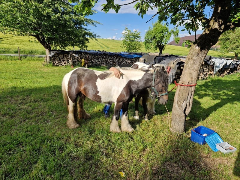 Dolla Twelve (genannt Salaika) ist eine ausdrucksstarke Tinker-Stute, die sich durch ihre Persönlichkeit und ihr ehrliches Wesen auszeichnet. Sie ist kein „Einsteigerpferd“, sondern ein Pferd für Menschen, die Spaß daran haben, sich mit ihrem Pferd zu beschäftigen und gemeinsam zu wachsen. Das bringt Salaika mit: - freundlich und menschenbezogen - verladefromm - im täglichen Umgang grundsätzlich unkompliziert - kennt Offenstall und Herdenhaltung - solide Grundlage im Freizeitbereich Salaika steht aktuell nicht im regelmäßigen Training und benötigt daher wieder konsequente, ruhige Arbeit, um ihr volles Potenzial zu entfalten. Im Gelände zeigt sie sich aktuell aufmerksam und etwas sensibel. Bei der Hufbearbeitung braucht sie Geduld und erfahrene Hände. Das sind keine „Probleme“, sondern Punkte, an denen man mit ihr arbeiten kann. Mit der richtigen Bezugsperson entwickelt sich Salaika zu einem treuen und verlässlichen Partner. Der Verkauf erfolgt aus Altersgründen im Rahmen einer Bestandsreduzierung eines über viele Jahre aufgebauten Pferdebestandes. Es handelt sich ausdrücklich nicht um Notverkäufe.