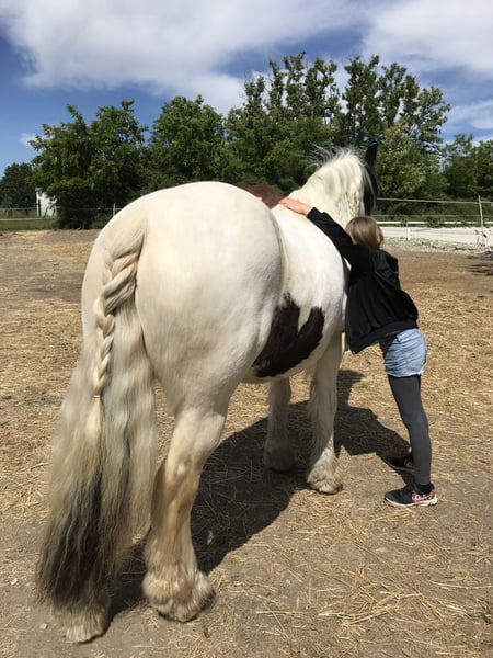 Zum Verkauf steht eine Bildhübsche Tinker Stute. Sie ist 12 Jahre alt und 142 cm groß. Sie ist ein Traum von Pferd, für jeden der ein absolutes Verlasspferd sucht. Peppi ist gelassen, unschreckhaft, aufgeschlossen und sehr kuschelbedürftig. Sie ist ein ausgebildetes Reitpferd, das für Anfänger und auch Fortgeschrittene Reiter geeignet ist. Egal ob Dressurarbeit, Bodenarbeit, Longieren, Ausritte gemütlich oder auch mal flotter, Peppi ist für alles bereit und zeigt sich stets arbeitswillig und macht einfach Spaß. Selbstverständlich ist sie regelmäßig geimpft, entwurmt und kommt sehr gut Barhuf zurecht. Sie ist kerngesund , nur an den Vorderbeinen hat sie leichte Raspe, was bei guter Pflege nicht stört. Peppi ist rangnierig, sie steht mit anderen Stuten zusammen in unseren Offenstall. Peppi möchte nicht in einer Box leben, sie genießt das Leben in der Herde und unter freiem Himmel, was wir uns für das neue Zuhause auch für sie wünschen. Peppi war nun 5 Jahre als Kinderpony im Ponyclub bei uns und zeigt uns, dass sie das nun nicht mehr leisten möchte. Peppi ist kein Gewichtsträger. Und nicht für den Schulbetrieb und Therapie geeignet. Wir wünschen uns einen liebevollen Menschen der es schätzt ein so tolles Pferd zu haben und gemeinsam Zeit verbringen möchte. Sie wird mit Zubehör abgegeben, ein Probereiten ist möglich, allerdings bei nur ernsthaften Interesse und nach vorheriger genauerer Absprache. Nähere Informationen gerne persönlich bei Heike Prescher. Standort Kaltensondheim Preis 8500 Euro VB / Platz vor Preis!
