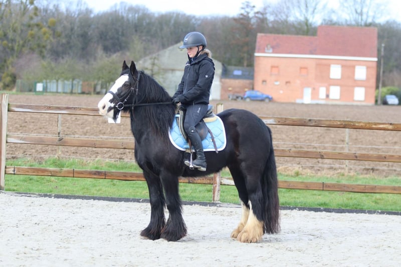 Flagon è una femmina di 13 anni, alta circa 1,42 m. Ha una corporatura molto robusta, rendendola perfetta anche per un cavaliere adulto. In compagnia, Flagon è una vera gemma: molto buona e tranquilla, si lascia facilmente avvicinare. Sa dare correttamente le quattro zampe, si ferma bene per essere montata ed è generalmente molto facile da gestire nella quotidianità. Sotto la sella, in arena, si rivela facile e piacevole da cavalcare. È anche ideale per escursioni e si diverte a uscire all’aperto. Inoltre, si comporta bene con altri pony ed è affidabile anche durante il trasporto. Una pony affidabile, con un aspetto bello e deciso! Per ulteriori informazioni? 0032475682243 Per video: chiedi al nostro sito web