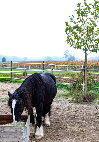Tinker mare, 14 years old, seeking a permanent home. A relaxed mare, brave and with a good nerve. She is middle-ranked within a mixed herd. Friendly with children and teenagers. She is currently in my pony school, but she does have her stubborn streak. I believe she would be better suited with a dedicated owner. Asthmatic, so she can only be kept in an open stable or similar setting with proper management.