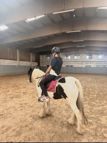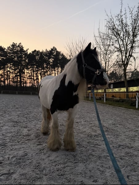 We are looking for a loving home for our Tinker pony, Rainbow, affectionately called "Tinki." Tinki is 15 years old, approximately 1.35 meters tall, and has a sturdy build that allows her to cover well. She is regularly vaccinated and dewormed, stands well for loading and farrier work, and is barefoot. At our stable, she stays in a box at night, but we can also imagine her in a paddock system. No health issues are known, and during her time with us, she has had no health problems. As is typical for her breed, Tinki occasionally develops mild mud fever, which is easily managed with regular hoof care. Feeding-wise, Tinki is uncomplicated. She mainly receives hay, along with some muesli and minerals. Tinki is an intelligent, affectionate, and lively pony that needs to be motivated, exercised, and engaged, as well as a consistent handler. She has a very friendly and loving nature but sometimes tests boundaries in a "pony manner," so she is only conditionally suitable for complete beginners. In our care, Tinki has been primarily used for pony leading, Hippolini lessons with small children, groundwork, and riding lessons. She has also shown skill and talent during pole work and small jumps. Her previous owners participated her in lead-rein competitions, and she is a reliable partner for pony rides at children's or village festivals. Tinki is being sold with bridle and saddle (included in the price). We only place her in the best hands, as she is unfortunately not mentally or physically challenged enough in our care, and we cannot meet her needs adequately. For further questions and videos, please feel free to contact us. €4,000 including saddle and bridle