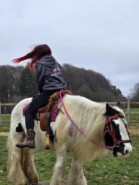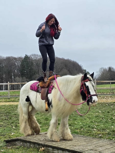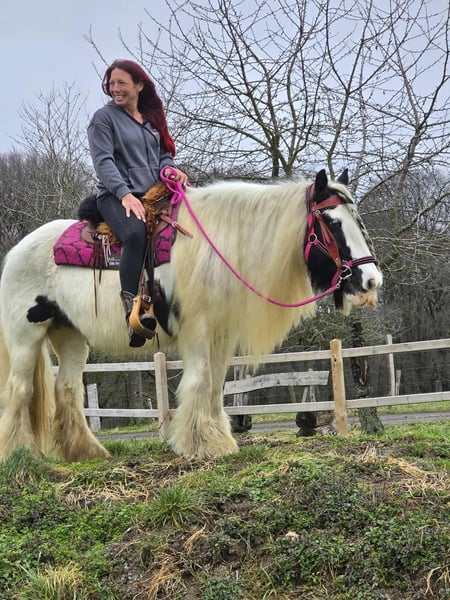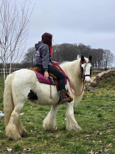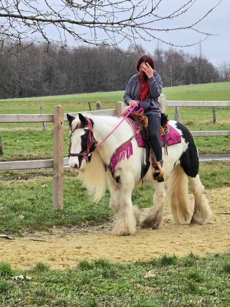 Lovely Tinker mare suitable for therapy, children-friendly, and a reliable leisure horse. Mossy is a sturdy small pony mare. Age: 15 years, born in 2011 Height: approximately 1.46 m (14.1 hh) Price: €4,500 Health certificate: available ✨ Description: This wonderful mare impresses with her balanced, friendly nature and calm demeanor. In daily handling, she is well-behaved, personable, and uncomplicated. Grooming, leading, and general stable routines are easy and pleasant. Under saddle, she is rideable and provides a good riding feel. She is especially calm and reliable in the terrain. She rides relaxed in the field and is suitable for longer hacks. She works motivated on the riding arena. Thanks to her gentle nature, she is an ideal partner for recreational riding. Suitable for: Leisure riders seeking a well-behaved, trail-safe mare. Also suitable for relaxed hacks, light groundwork, and reintegration riders who value an honest horse. Our horses are regularly: – wormed – attended by a blacksmith – osteopathically checked Farm shop: Western saddles, bridles & accessories Transport and equipment can be organized affordably upon request Our service: ✅ 3-month exchange guarantee ✅ Trial ride: €35, each additional horse €25 (credited if purchased on the same day) ✅ €100 immediate discount for pickup or transport on the same day ✅ Personal & honest advice Please contact us exclusively by phone: 0171 – 4001968 Available daily from 8 a.m. to 8 p.m. ⚠️ No emails or WhatsApp messages ⚠️ All information without guarantee