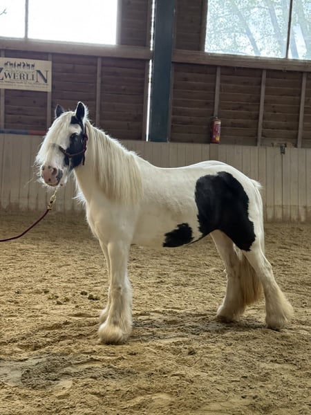 **Sales Advertisement: Tinker Mare** For sale is our charming Tinker mare! - Breed: Tinker - Gender: Mare - Year of Birth: 2009 - Color: Piebald - Height: 130 cm - Use: Leisure, Breeding, Children's Pony Our mare is a true leisure pony and is excellent for relaxed walks and guided rides as well as various activities in the field. She has a gentle nature and is thus perfectly suited for both young and old. The mare is well-trained, easy to handle, and has a friendly character. She loves attention and is always ready to experience new adventures. If you are interested or have any further questions, we look forward to your message! **Location: 8283 **Contact: 06649129444 We look forward to your inquiry!