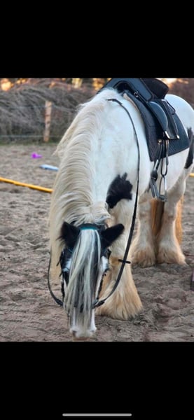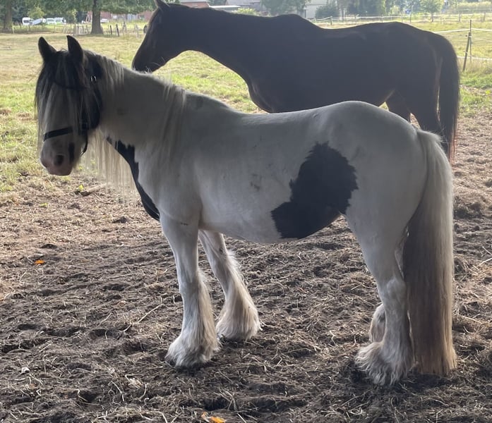 Sales advertisement: Tinker Mare For sale is a beautiful Tinker mare, born in 2009. She is a striking piebald with a height of 145 cm and is excellently suited for dressage. With her blue eyes, she is a real eye-catcher. The mare impresses with her friendly nature and balanced temperament. She is well-mannered, well-educated, and has already gained experience in dressage. Her movements are smooth and elegant, making her an ideal partner for dressage riders who value a harmonious partnership. Walks alone or trail rides are no problem at all. She is suitable for both experienced riders and beginners who wish to develop further in dressage. She has a dust allergy and must live in an open stable as she cannot tolerate being in a barn. For inquiries or further information, I am happy to assist. Viewings are possible by appointment. We look forward to your message!