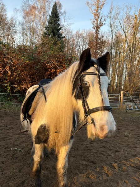 Diese Liebe, 17 Jahre alte Tinker Stute steht zum Verkauf. Leider hat sie eine Heustaub Allergie. Sie kann bedingt geritten werden. Hier ist sie mit Kindern betüddelt worden, geritten worden, eher Schritt und Trapp. Im Winter steht sie im Offenstall, im Sommer 24/7 auf der Weide ohne Einschränkungen. Die Stute ist ca 142cm groß