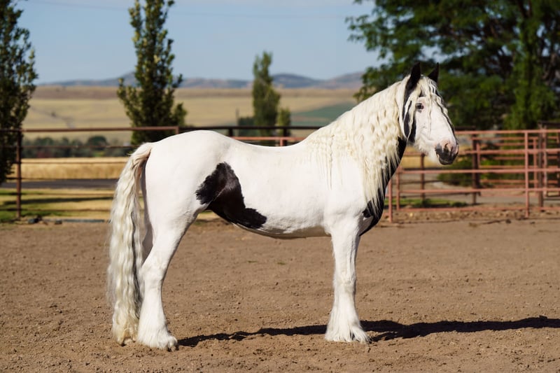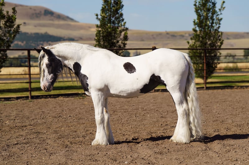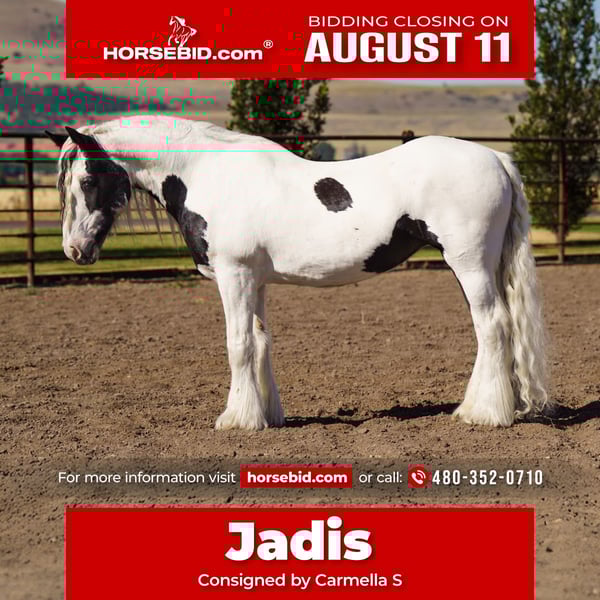 ⚜ The HERITAGE Classic ⚜ Happening now thru MONDAY | AUGUST 11th - Available EXCLUSIVELY on HorseBid's website! For more details and to register visit: www.Horsebid.com CONSIGNOR CONTACT: Carmella S 480-352-0710 LOCATION: Smithfield, UT BREED: Gypsy Vanner REGISTERED: Yes REGISTERED NAME: GMR jadis COLOR: Piebald HEIGHT: 15.2 AGE: 19 GENDER: Mare JADIS: This beautiful piebald REGISTERED GYPSY VANNER mare is a 2006 model, don’t let her age fool you! With her stocky, athletic Gypsy build, at 15.2 h, thick bone size and booty to spare, she can carry any size of rider! She has a flowing mane and tail with beautiful feather. Just some of the experiences Jadis has had In her past, she has had a foal, she is no stranger to having a rope swung off her, while moving cattle, she does have it in her to be cowy. She has a good stop, will side pass, lopes, backs it up. She has spent the good part of her life traveling down trails. Walks out confident at the front of a herd or will fall in line and follow. She has plenty of energy to get a job done or can do a extended trail ride without needing to pedal her. She enjoys a good ride with her person. She will go alone or with a group with no issues, not buddy sour!. She has been ridden down the street to the Farmers Market, exposed to people, flags, cars ,banners and such. She has seen most things and is comfortable with the vast majority of what “town” has to offer. Jadis has a in-your -pocket sweet personality and she loves the one on one attention anyone gives her ,she deserves her person! Rather you want to go down trails, lead line, 4H, raising babies, or whatever you desire, Jadis is up for it! Jadis is a easy keeper, maintains her weight well. She is easy to catch, comes right to you at the gate, she loads, bathes, grooms, easy to tack up, picks her feet up and fly mask easy peasy. She is healthy, cleaned legged. Jadis has been kept wormed, vaccinated, recently had her teeth done. She has hard as nail hooves, we have kept her fronts shod. Jadis is waiting for her next person to do all the things! Are you the one????? PPE is welcomed at buyers expense. She is located in Smithfield, Utah Contact 480-352-0710