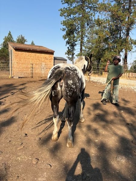 Meet Maybelle — a stunning, intelligent young mare with a ton of potential. She’s been working on her ground manners for the past year and has been tacked, lunged, and lightly started under saddle (over 20 rides at 2 with her previous owner). My daughter rode her once and found her very responsive, but she’s still young and needs consistent time to grow and develop. Maybelle is confident, curious, and always the first to the gate. She’s sweet but can be pushy, so she needs an experienced, assertive rider to guide her. She moves beautifully, is naturally balanced, and would make a fantastic project for someone looking to bring along a talented young horse. She’s barefoot, an easy keeper, and UTD on vaccines and Coggins. She’s improving with the farrier — good with backs, still working on the fronts. She’s not the right fit for me, as I’m too timid for her energy level, but in the right hands, she’ll shine. Contact me for more photos and videos or to come meet her!