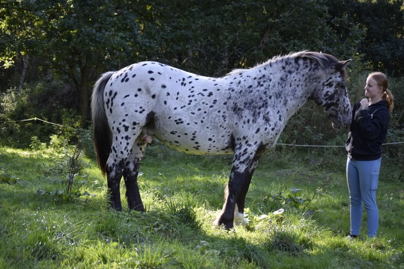 Gebe wegen Verkleinerung meine tragende Appaloosa Stute ab. Sie ist am 24.06.2022 geboren, sie ist ca. 145cm momentan groß und sehr kräftig. Aufgrund des Alters noch nicht eingeritten. Sie ist tragend für 05 / 2026 , der Deckhengst ist ein gekörter Irish Cob Partbred Smoky Black Appaloosa Spotted ( auf den letzten beiden Bildern, mit 2 Jahren 150cm groß). Bei Fragen einfach schreiben.