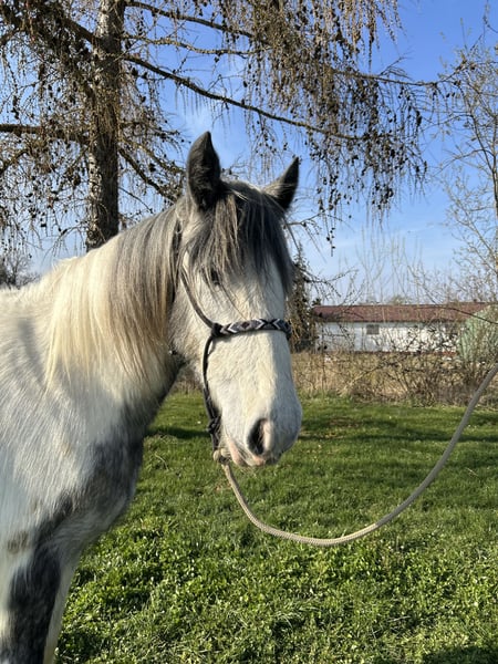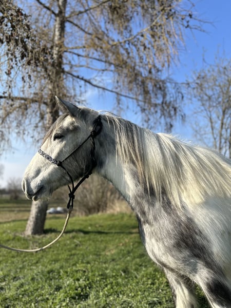Born in 2023, this Irish Cob mare is looking for her new home. She stands approximately 1.45 meters at the withers. Currently, she walks calmly in basic gaits and is in ongoing training. Having grown up in a large herd, she is well-socialized and gets along well with other horses. The mare has already been ridden in small groups on the trail and is now being introduced to riding in the arena. She also comfortably carries larger riders. Additionally, she is farrier and loading friendly. If you are interested in this lovely mare, please feel free to call. For a visit with a preliminary ride and trial ride, we charge €40, which will be fully refunded upon purchase of the horse. We kindly ask for your understanding. TEL.: 01709343872