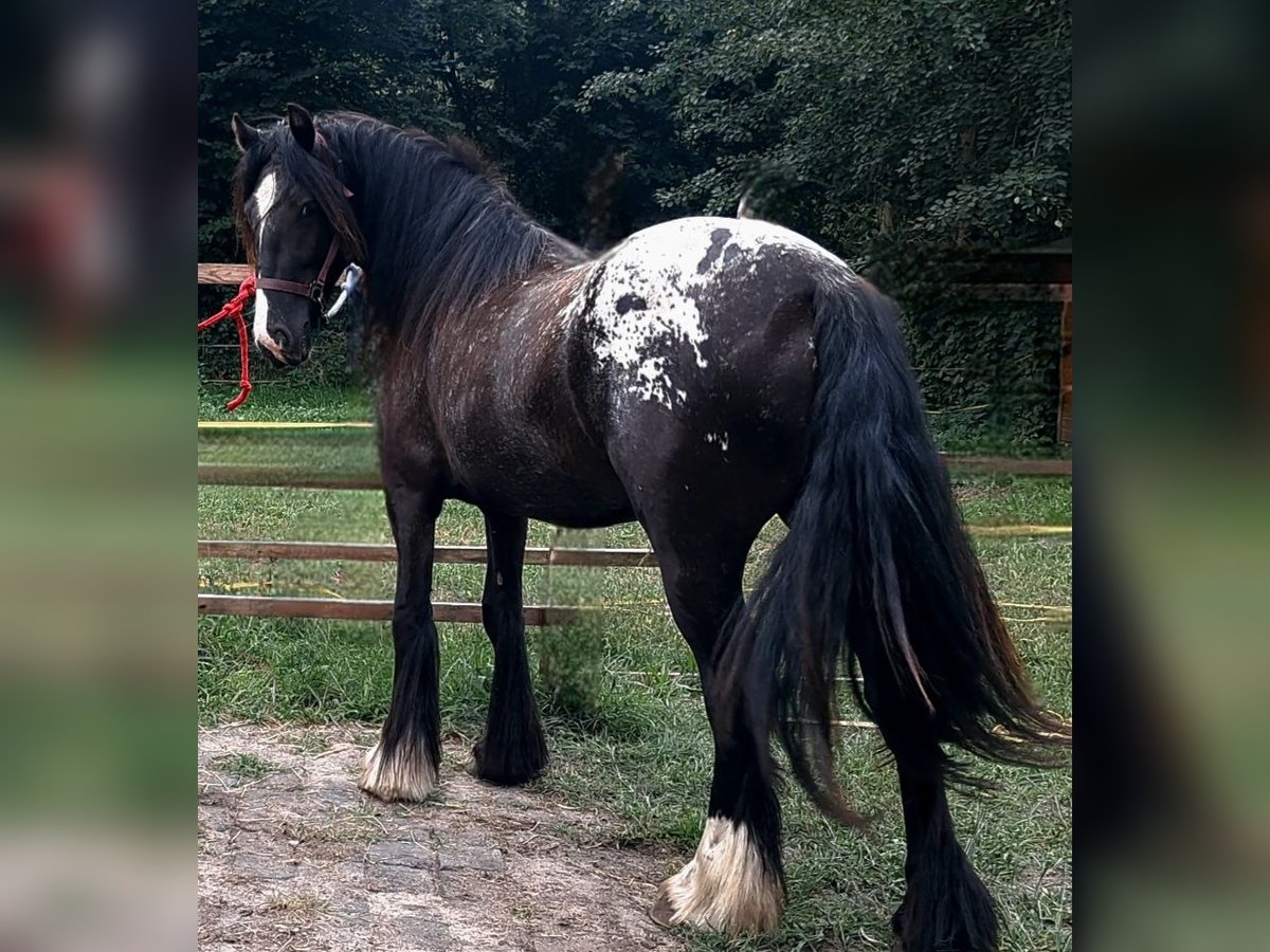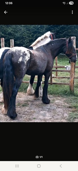 For sale: Tinker mare – Perfect for leisure riding! We are offering a beautiful Tinker mare, born in 2023. She impresses with her striking tobiano coat pattern (Smokey Black Appaloosa with tiger striped saddle blanket) and a friendly temperament. With a height of approximately 15.2 hands [still growing], she is ideally suited for recreational riding, shows, or breeding. The mare is healthy, well-socialized, and exhibits a very gentle nature in handling. Sold only with a final stable placement due to health reasons. This is not a distressed sale. Papers are from the ICS. Whether for long walks or simply to fall in love with – this young Tinker lady is a wonderful companion for anyone seeking a reliable and charming leisure horse. I have already led her around in walk with my daughter, and she remains calm. Otherwise, she is still quite raw, as she is still in her growth phase and needs time and care. Overall, she is very level-headed. Please feel free to contact me for further information or if you are interested!