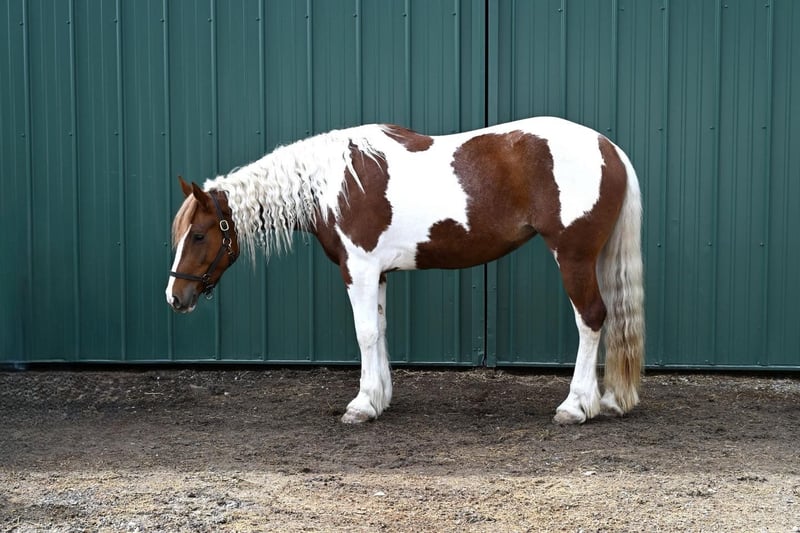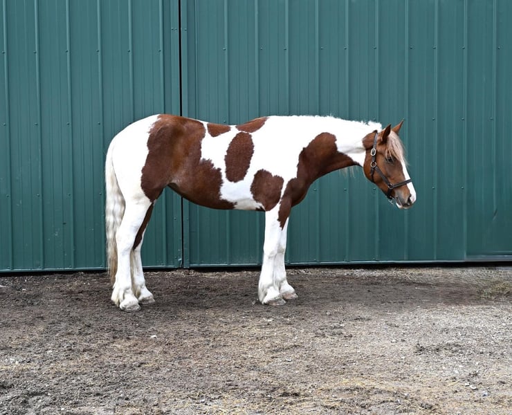 Aurora, yegua de 4 años, de 15,2 hh, mezcla de Paint y Gypsy Cob.