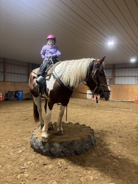 ▪️▫️◾️𝐭𝐡𝐞 𝑴𝒂𝒚 𝐒𝐞𝐥𝐞𝐜𝐭◾️▫️▪️ Happening now thru MONDAY | MAY 4th - Available EXCLUSIVELY on HorseBid's website! For more details and to register visit: www.Horsebid.com CONSIGNOR CONTACT: Wolcott’s Versatility Horses and Training 585-734-0169 LOCATION: Warsaw, NY BREED: Gypsy Cross REGISTERED: No COLOR: Paint HEIGHT: 15.2 AGE: 4 GENDER: Mare Aurora is a 4-year-old, 15.2hh Gypsy/ QH cross paint mare. Not only does she have the beauty, but she was blessed with brains, too! She rides both English and Western. She always cares for her riders and is a lovebug on the ground. She is a rose among the thorns and one of the nicest mares you will meet. On the trail, Aurora has packed a variety of riders, from complete beginners to advanced riders! She is careful, slow, and surefooted. She is always happy to go out and is ready for any adventure. We have ridden her all over through the woods, along the road, in open fields, and into the pond; She’s as unflappable. She’s in no rush and enjoys taking in the sights for a relaxing ride. She’s as comfy as a couch and has the smoothest walk, trot, and canter. Even if you aren’t a “mare person,” we can guarantee Aurora will change your mind. She’s lovely and kind in every way. Aurora is also fantastic in the ring! This girl is very hard to find a flaw in. She’s happy to mosey around on a loose rein but will collect up when asked. Her brakes are impeccable; she will stop on a dime with just a “whoa” or a shift of your seat. She’s packed around the kids and adult beginners like a champ. She’s lovely over jumps and is so easy to jump. We’ve been keeping it light with the jumping because of her age, but we couldn’t ask her to do any better. She’ll pop over cross rails and small verticals in the ring and has even been out cross-country schooling! She is cute and honest in every way. She could easily excel in fox hunting or lower-level dressage. She has the proper foundation to go in any direction. On the ground, Aurora is safe to work around. The kids can run around her, brush her, lead her in and out of the field, and tack her up. She loves people; in the barn, her head is always hanging out of her stall looking for attention. She is well-behaved for the vet and farrier and loads right into the trailer. Aurora is the one if you want a solid young horse that you don’t have to worry about and can relax on! She’s quickly become a barn favorite, and we have no doubt she will thrive in any environment! She has zero vices. Contact Dayton at 585-734-0169 for more information on Aurora. Located in Warsaw, NY