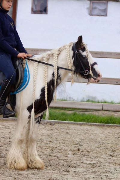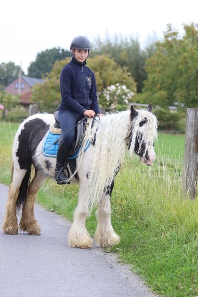 🌟 Alley – das kleine Prinzessinnenpony 🌟 Alley, ein super liebes 5-jähriges Tinker-Stute von 1,27 m. Sie hat alles, wovon Kinder träumen: einen sanften Charakter, einen ruhigen Galopp und eine wunderschöne, lange Mähne, die man endlos flechten kann. 🥰 ✨ Was macht Alley besonders? • Sie ist brav und zuverlässig unter dem Sattel. • Mag gemütliche Ausritte. • Kann stundenlang stillstehen für das Putzen, Waschen oder das Flechten. • Ist freundlich zu anderen Ponys. • Springt gerne ein kleines Sprüngchen mit. Alley ist das ideale Partnerpony für junge Reiter, die reiten, kuscheln und pflegen möchten. 💖 Mehr Infos? +32475682243 Für Videos: fragen Sie nach unserer Website.