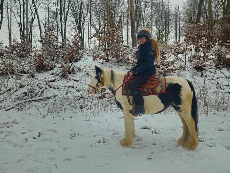 Tinker Stute – brav, gelassen & vielseitig einsetzbar, auch für Therapie geeignet Alter: 5 Jahre Stockmaß: ca. 1,35 m Preis: 4900,- AKU: vorhanden ✨ Beschreibung: Diese charmante Tinker Stute ist ein richtig nettes Pony, das nahezu jeden Spaß mitmacht. Sie überzeugt durch ihr freundliches, ausgeglichenes Wesen und zeigt sich im täglichen Umgang brav, unkompliziert und menschenbezogen. Unter dem Sattel ist sie nett geritten, kooperativ und angenehm zu reiten. Ob auf dem Platz oder im Gelände – sie zeigt sich gelassen und macht ihrem Reiter einfach Freude. Durch ihre ruhige, geduldige Art ist sie sehr zuverlässig und lässt sich auch in neuen Situationen nicht aus der Ruhe bringen. Perfekt für: Kinder, Jugendliche oder kleinere Erwachsene, die ein liebes, verlässliches und vielseitiges Pony suchen. Ideal für Freizeit, Ausritte, Bodenarbeit und alles, was gemeinsam Spaß macht. Aufgrund ihres ausgeglichenen Charakters und ihrer großen Gelassenheit ist sie auch interessant für den Einsatz im therapeutischen Reiten, da sie wirklich brav ist und vieles geduldig mitmacht. Unsere Pferde werden regelmäßig: – entwurmt – vom Schmied betreut – osteopathisch kontrolliert Transport auf Wunsch günstig organisierbar Anfragen bitte ausschließlich telefonisch: 0171 – 4001968 Erreichbar täglich von 8–20 Uhr ⚠️ Keine E-Mail oder WhatsApp ⚠️ Alle Angaben ohne Gewähr